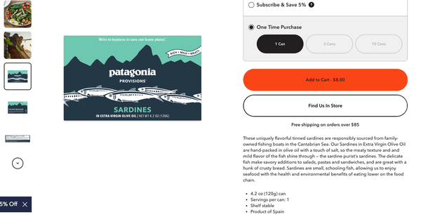 Patagonia Provisions • 2nd December 2024 Sardines in Olive Oil PDP PDP copy for new sardines product.
