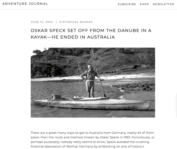 15th June 2023 Oskar Speck Set Off From the Danube in a Kayak—He Ended in Australia – Adventure Journal There are a great many ways to get to Australia from Germany, nearly all of them easier than the route and method chosen by Oskar Speck in 1932.